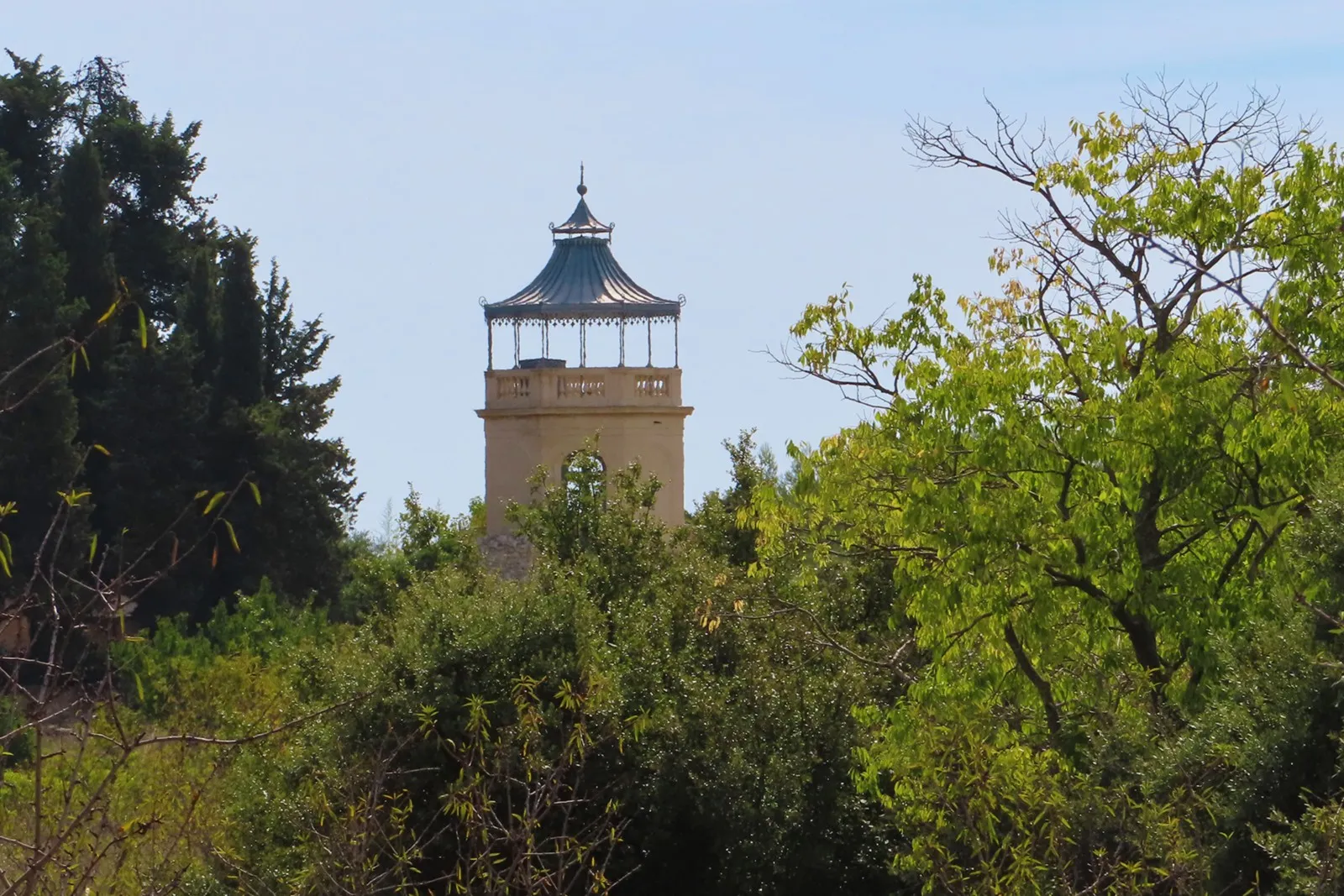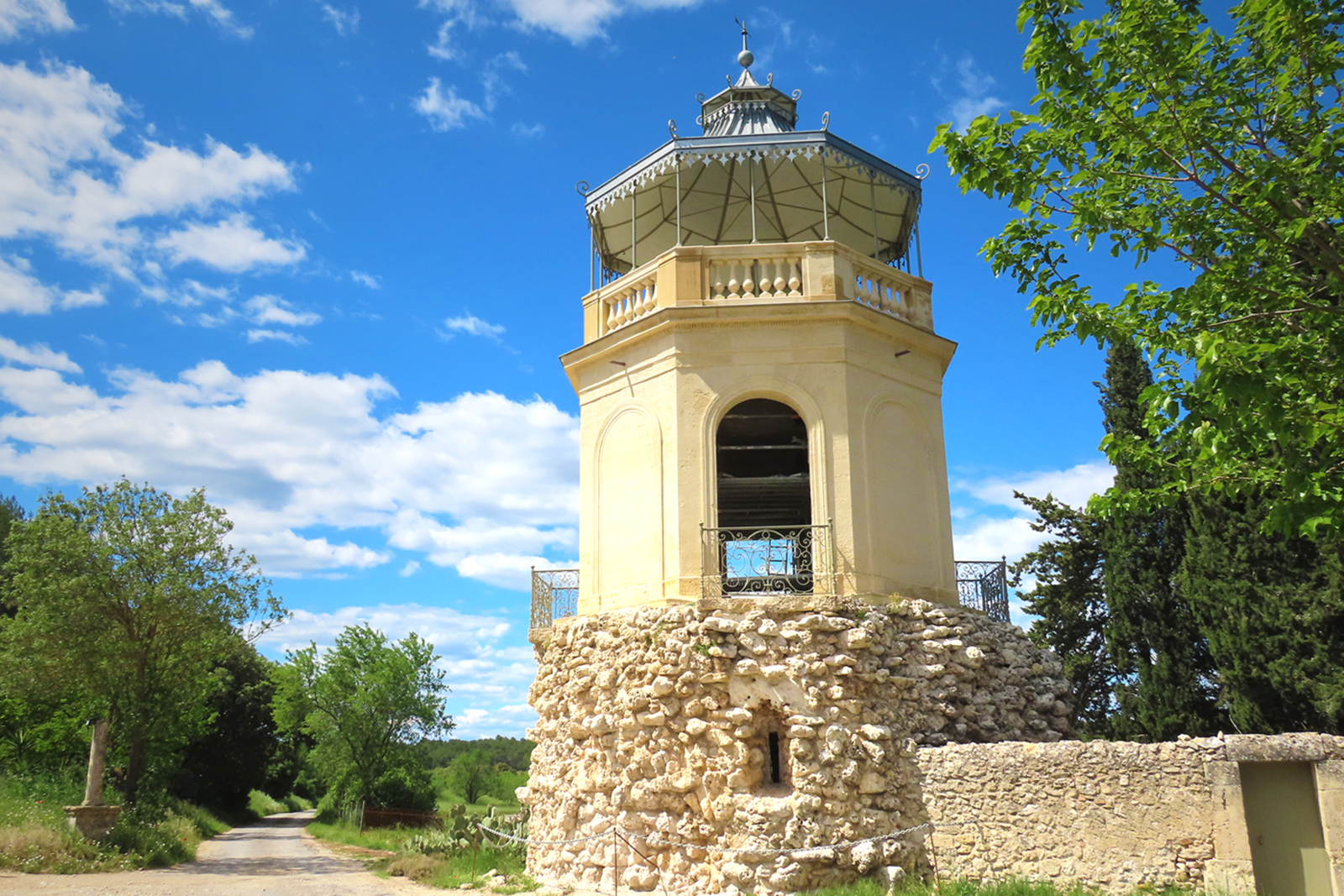 C'est un petit édifice de 6 mètres de diamètre pour 15 mètres de hauteur qui comprend trois niveaux et qui offre une vue magnifique sur les paysages alentours, un petit tambour octogonal d’allure néo-classique, percé de quatre portes-fenêtres édifié au-dessus d’une rocaille
