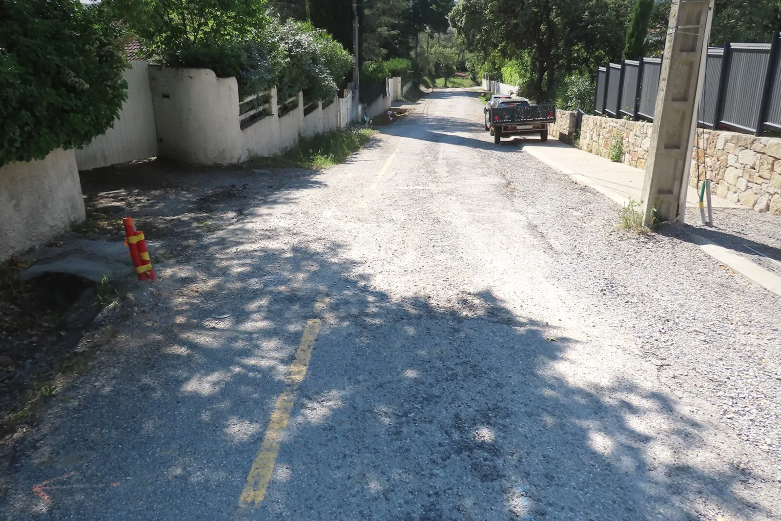 Une très agréable balade familiale variée d'environ 7.20 kilomètres, où nous passons du village à la campagne et pour y revenir ensuite, très agréable puisque calme et ombragée, au milieu des chênes et des vignes, et sans aucune difficulté particulière sinon ces quelques passages pierreux...
