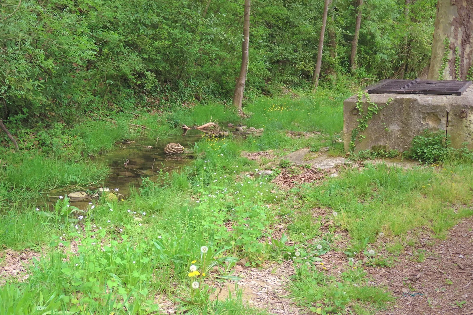 Nous remarquons un arbre scuplté : c’est une tornade, en 2009, qui en est à l’origine