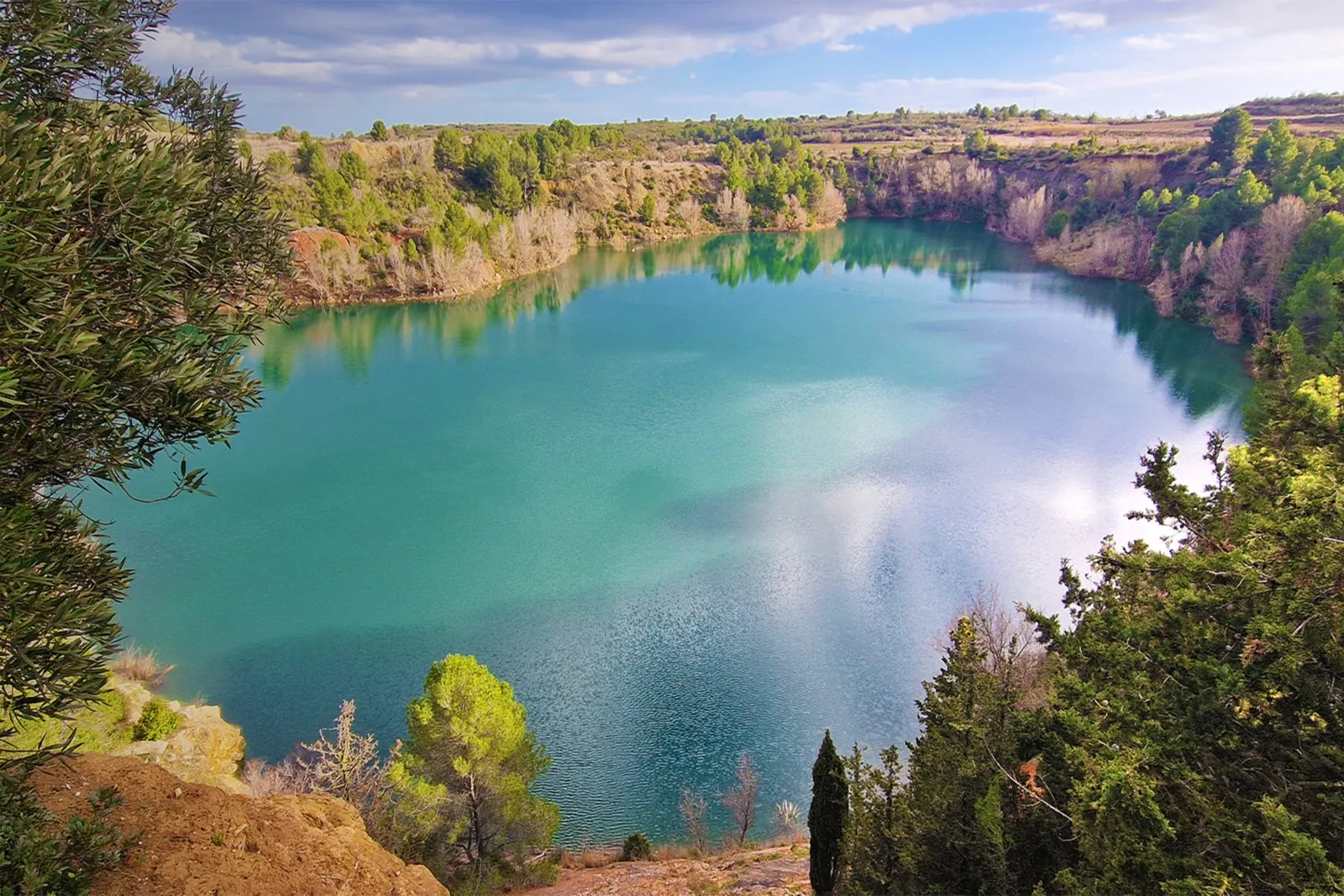 Une très agréable balade familiale variée d'environ 7.30 kilomètres très sympathique car très variée au niveau des paysages, nous passons en effet des bois de pinèdes aux jolies vues sur l'étang de Thau et son environnement et sans oublier, joli bonus, ce lac aux eaux émeraudes qui brillent parmi les terres rouges