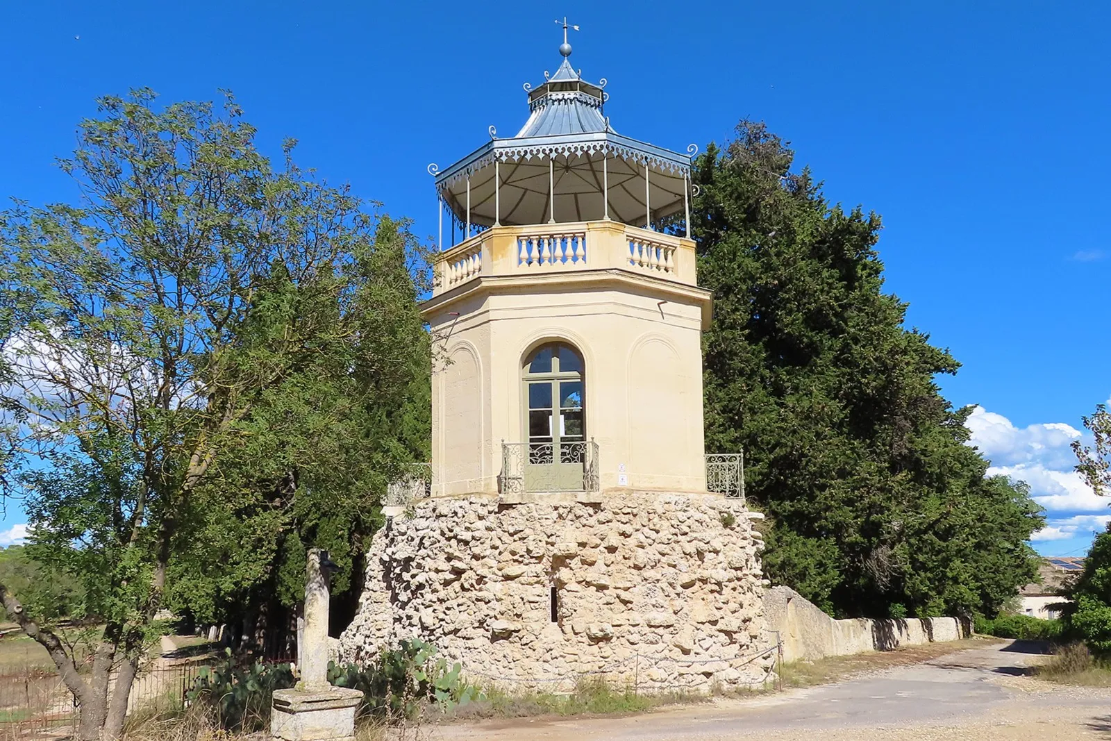 C'est un petit édifice de 6 mètres de diamètre pour 15 mètres de hauteur qui comprend trois niveaux et qui offre une vue magnifique sur les paysages alentours, un petit tambour octogonal d’allure néo-classique, percé de quatre portes-fenêtres édifié au-dessus d’une rocaille